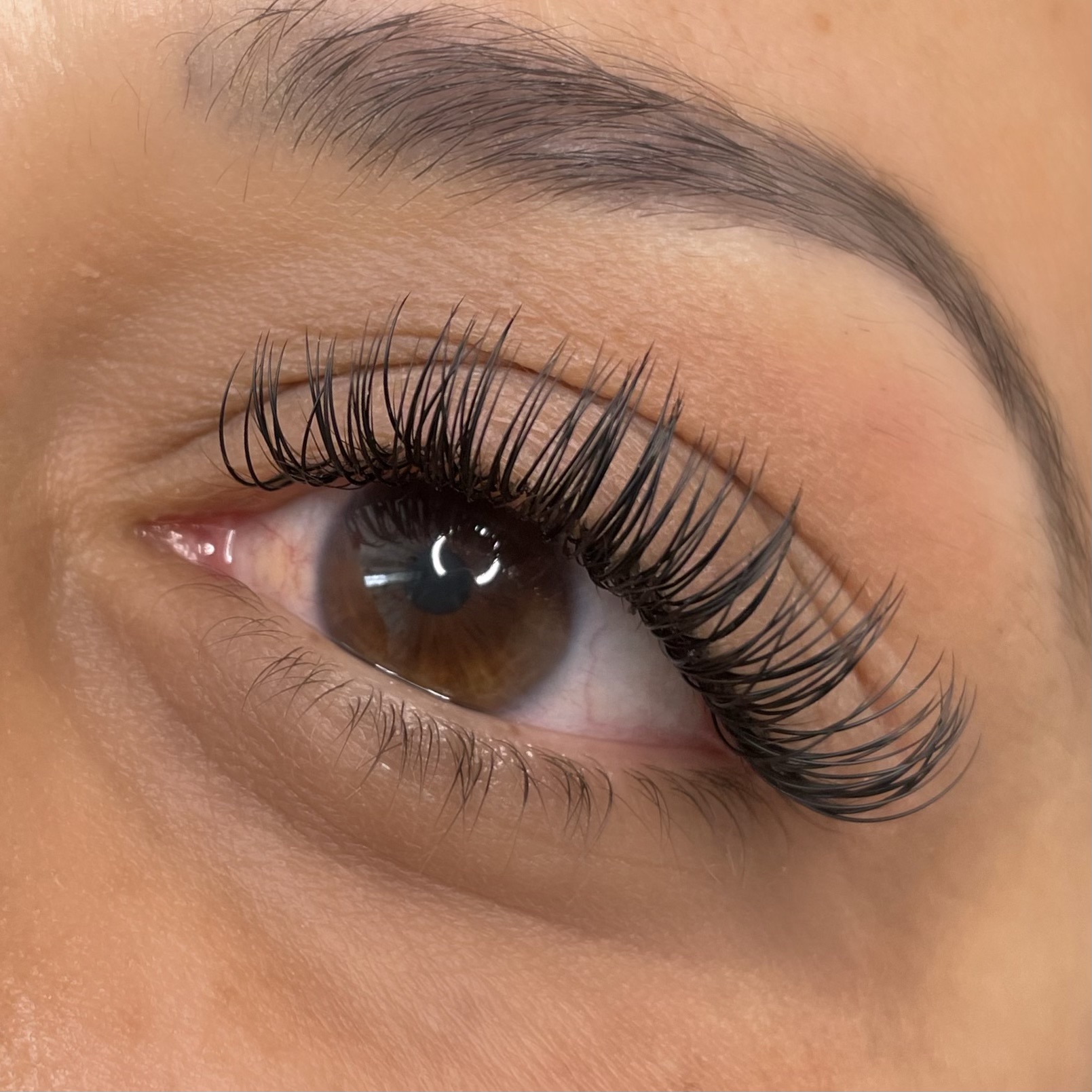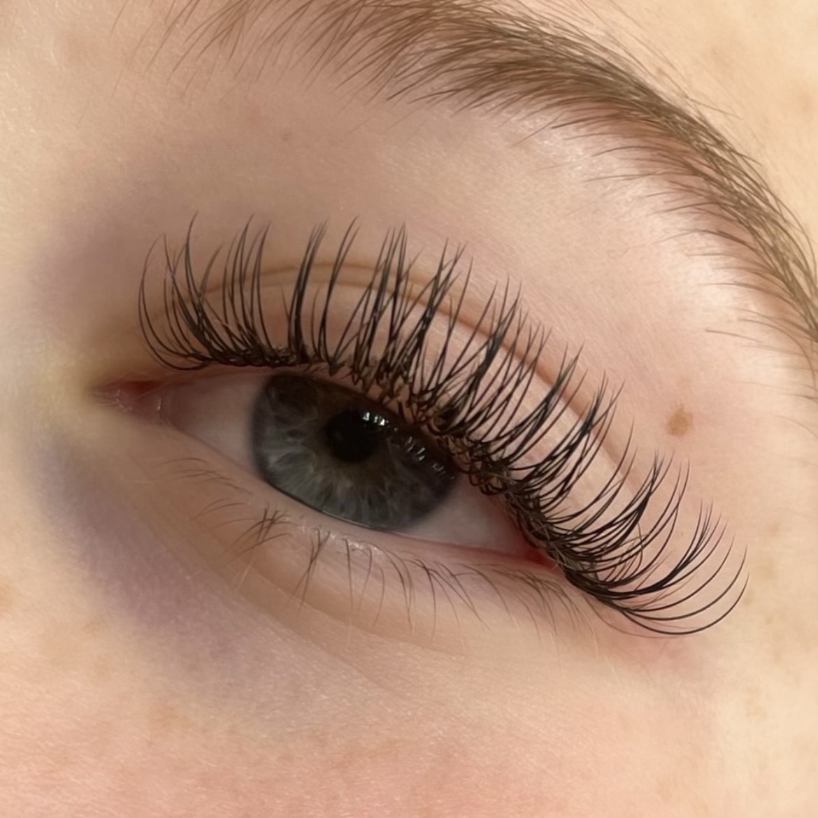 This is when multiple lash extensions are fanned out and applied to one natural lash, giving a nice and fluffy lash line.